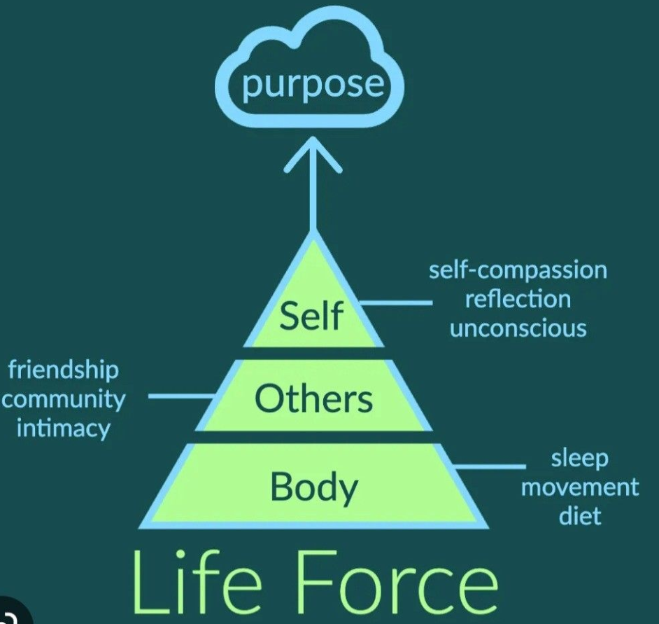 At the base of human motivation lies Maslow’s Hierarchy of Needs, a structured ascent from primal survival to transcendent growth. Physiological and safety needs form the foundation, ensuring stability against entropy’s chaotic pull hunger, insecurity, or isolation breed disorder in the mind and body. As one climbs to love, esteem, and self-actualization, the focus shifts to inner fulfillment, where creativity and purpose emerge, culminating in self-transcendence, where personal boundaries dissolve in service to others and higher ideals. This hierarchy mirrors Phil Stutz’s Life Force pyramid: the body (aligning with physiological needs), relationships (love and belonging), and self (esteem and actualization). Stutz warns that denying this innate force connected to higher energies leads to inertia, a state of high entropy where vitality stagnates, echoing Campbell’s view in My Big TOE that unchecked ego and fear increase disorder.